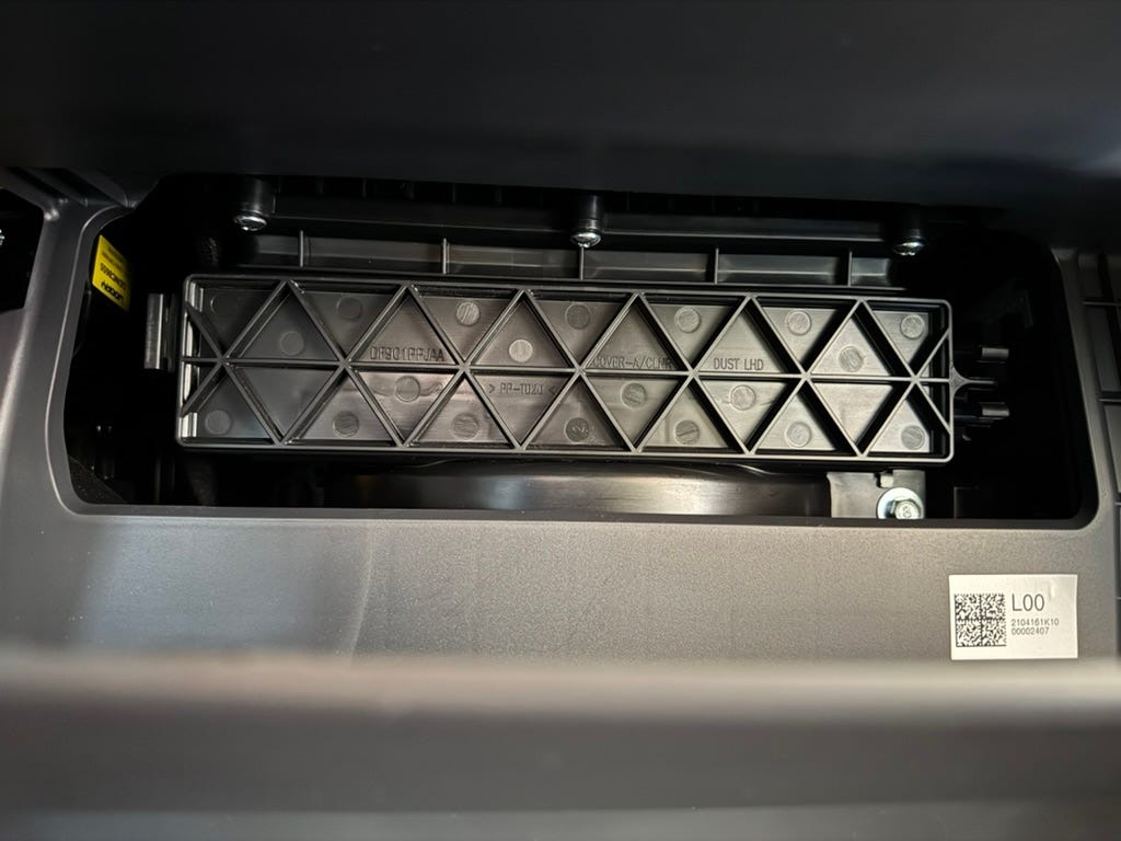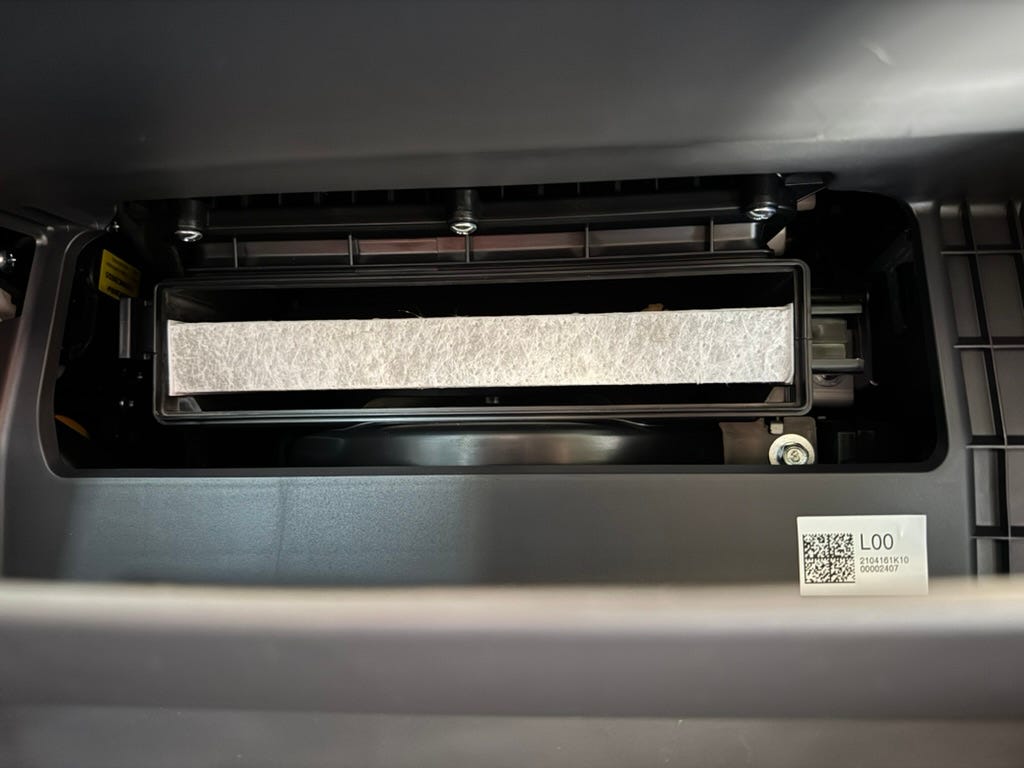 Once they are out, the glove box will drop down lower, revealing the air filter location.