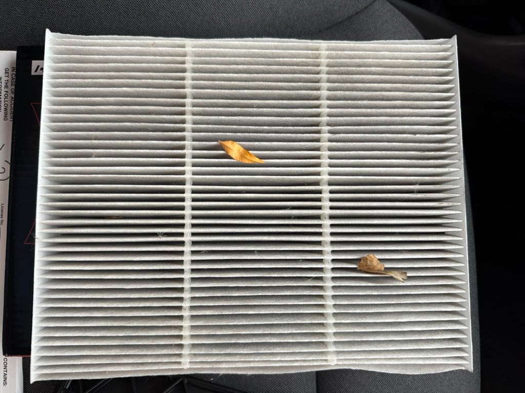You can now just slide it out. Make a note of the airflow direction of the existing filter, which should be pointed down. My filter was about a year old and was noticeably dirty. It even had a couple leaves stuck in it!