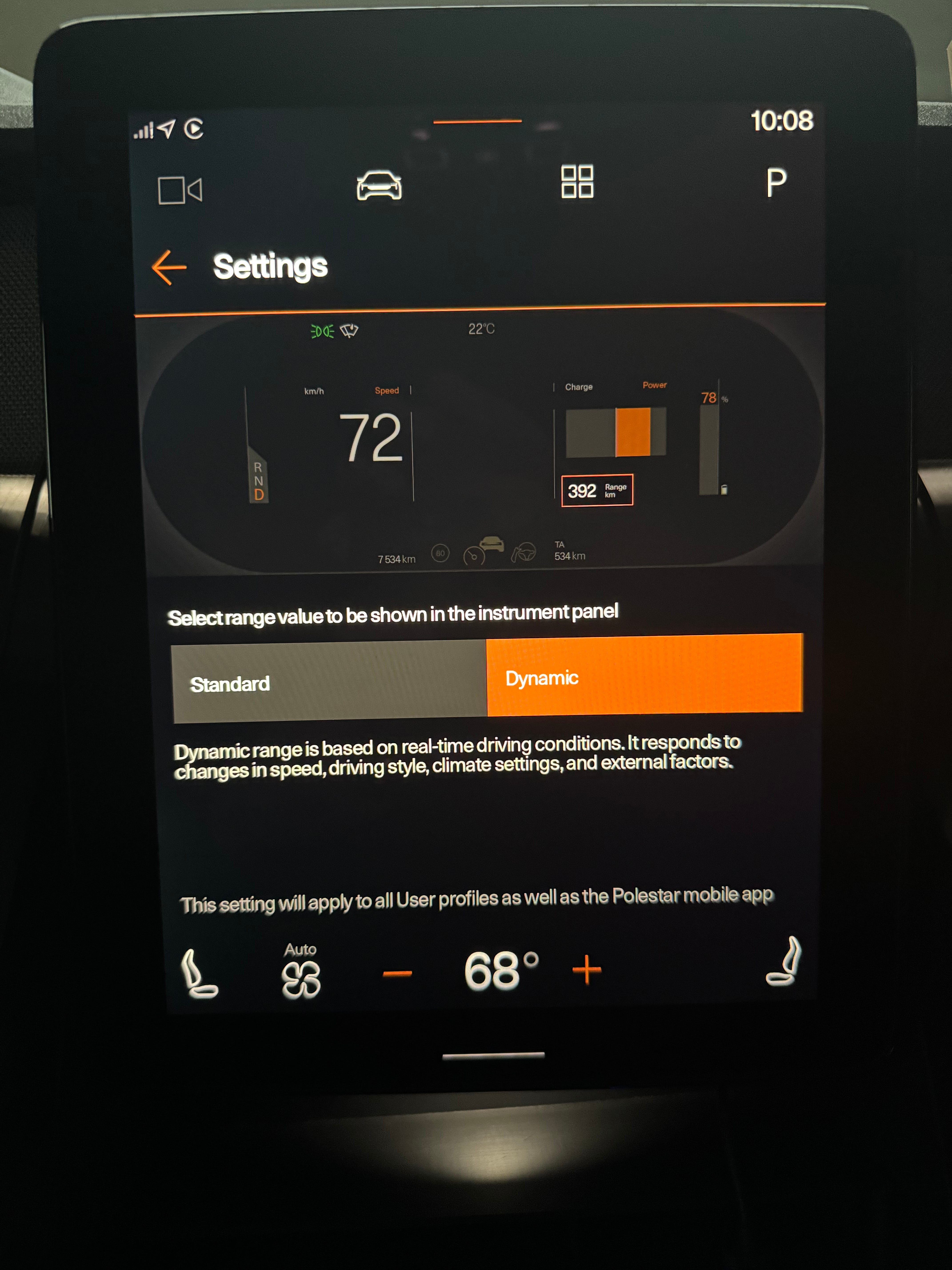 So how can you actually tell the battery state of health (SoH) for your car? You certainly cannot tell by looking at the estimated range. After all, it is just an estimate and depending on the setting you have, either just shows a range based on the battery percentage (Standard) or based on driving habits and outside temperatures (Dynamic). In the Polestar 2 you can change between these two settings using the Range Assistant app. I prefer Dynamic.
